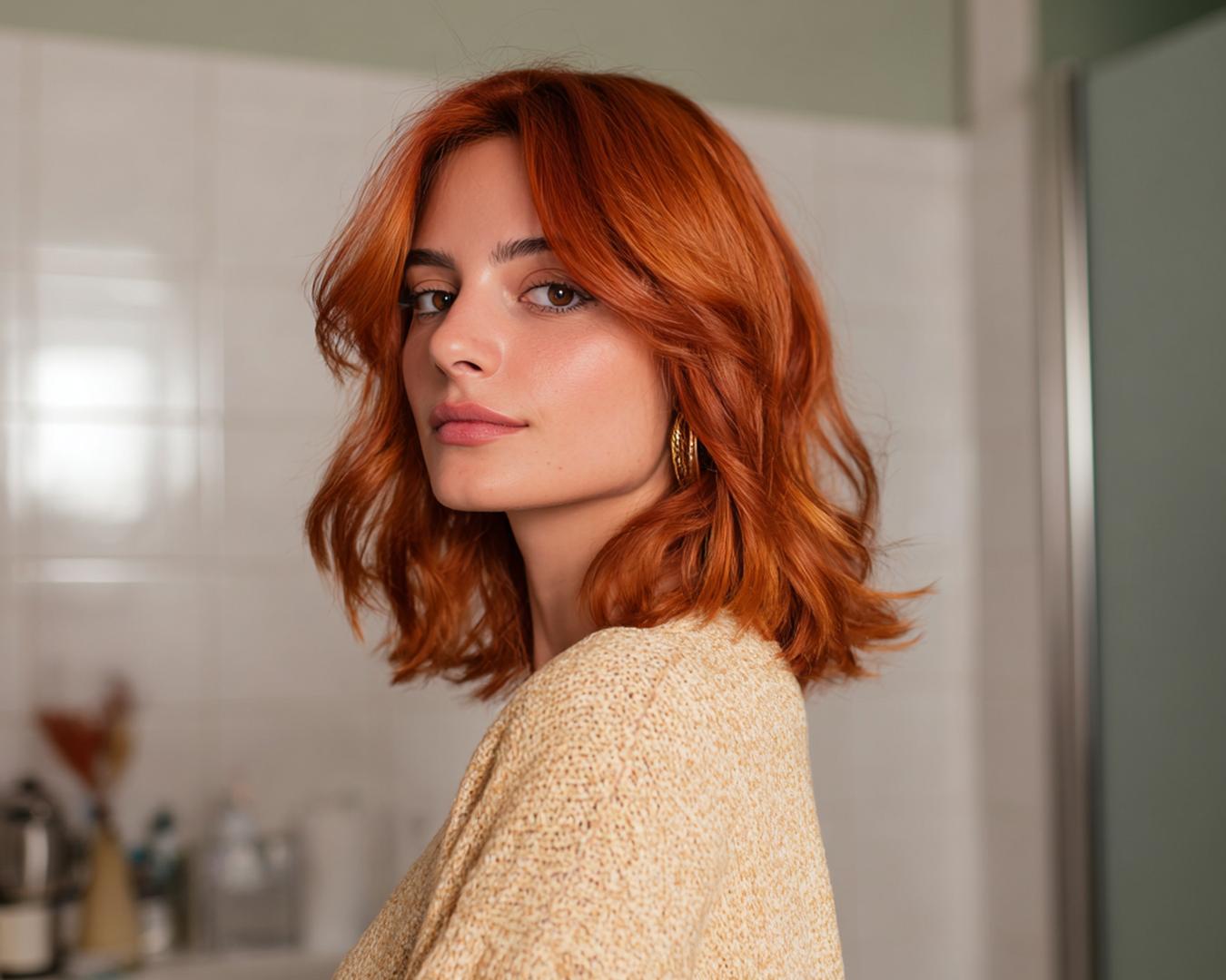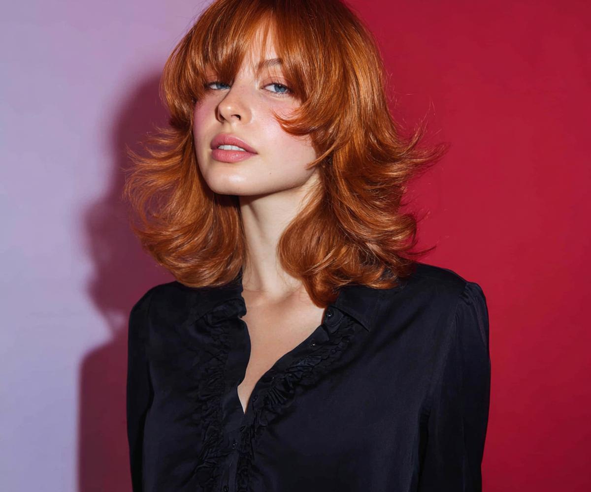 Yumuşak kaküllü orta kesim bakırı sakin ama karakterli taşır. İnce telli saçlarda katlar hacim kazandırır; küçük alınlarda kısa perçem ferahlatır. Düzleştirici yerine fön fırçasıyla şekil ver; renk tazeliği için sülfatsız şampuan tercih et.