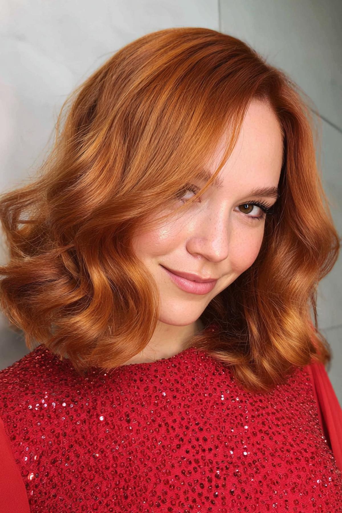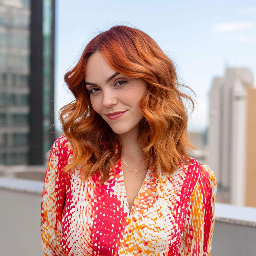 Yumuşak dalgalı, omuz hizasında bir lob; bakır tonun sıcaklığıyla yüz hatlarını yumuşatır. Orta katlar hareket verir, ince‑orta telli saçlarda canlı durur. Açık ve buğday tenlerde çok uyumlu; esmerlerde sıcak makyajla dengelenir. Renk koruyucu şampuan ve ısıdan önce sprey şart.