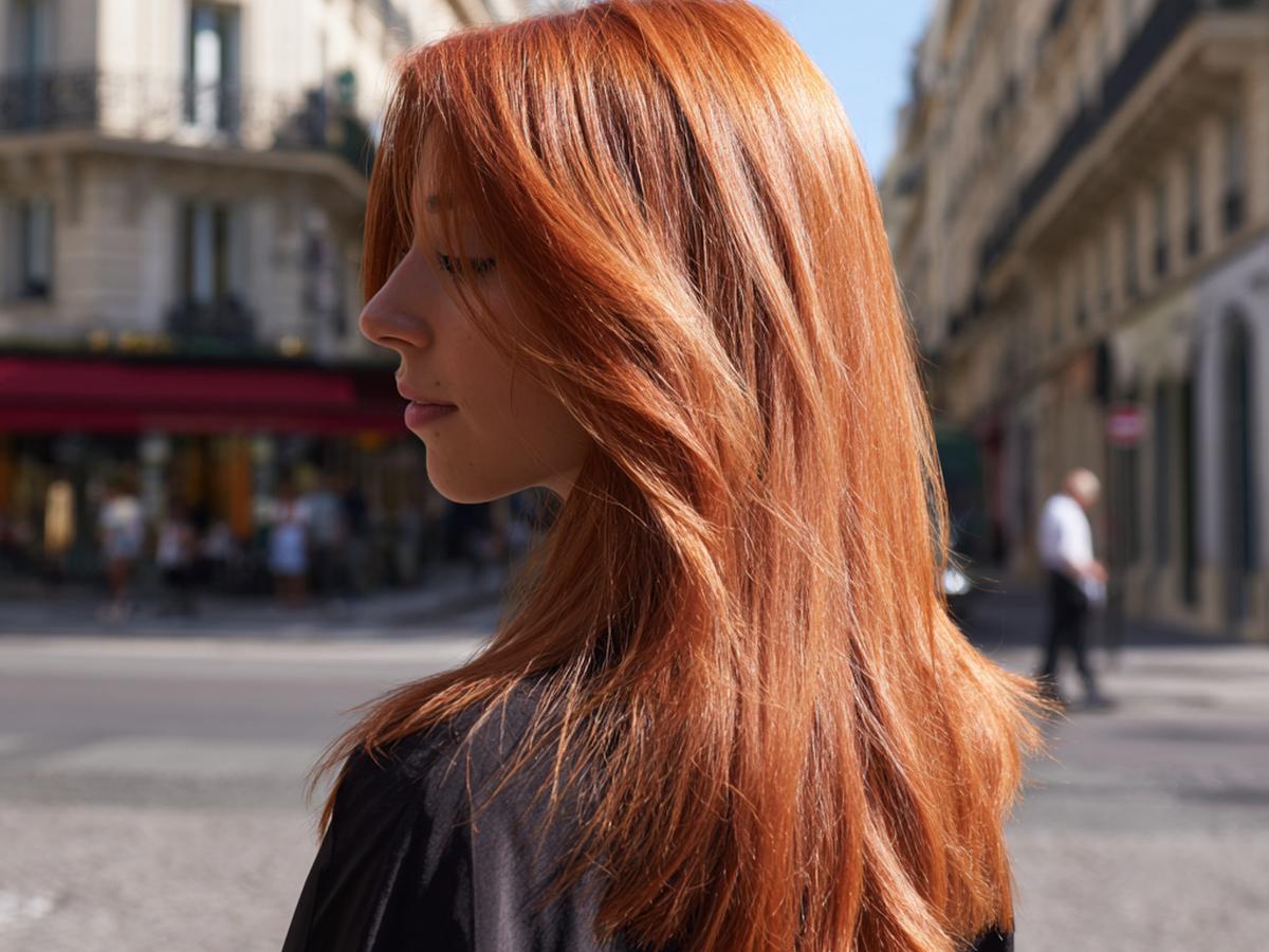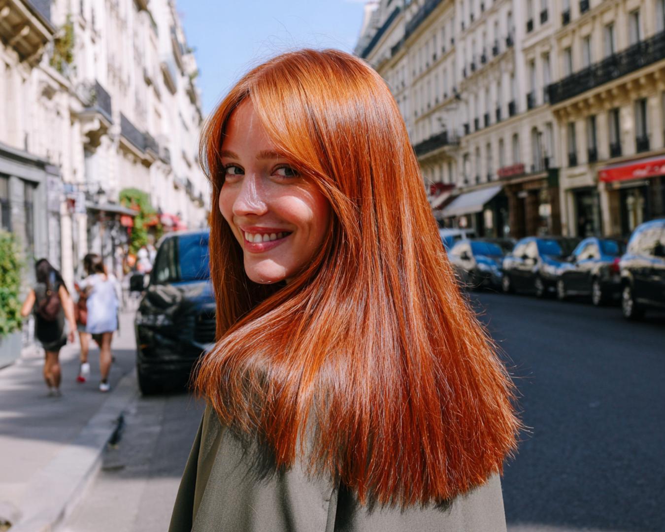 Belirsiz katlı, düz ve uzun bakır saç; düz kesim perçem bakışı odaklar. İnce yüzleri dengeler, alın genişliğini gizler. Isıya dayanıklı serum ve geniş plakalı düzleştiriciyle tek geçiş yeter. Renk solmasını azaltmak için ısıyı 180°C altında tut; uçlara haftada bir besleyici maske uygula.