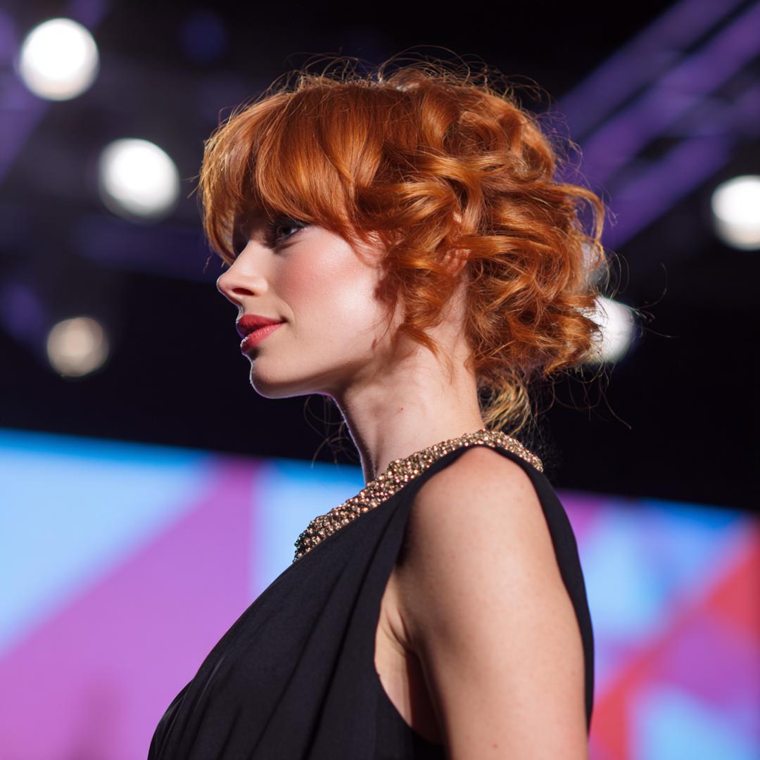 Yoğun kıvrımlı, tam kaküllü bakır bob; cesur ama feminen. Orta–kalın telli saçlarda hacim harika taşınır. Kare ve oval yüzlerde denge kurar. Bukle belirginleştirici krem ve difüzör şart; jöleyi avuç içi sıkma hareketiyle uygulayın. Rengin sıcaklığı, dudaklarda nötr tonlarla çok uyumlu.