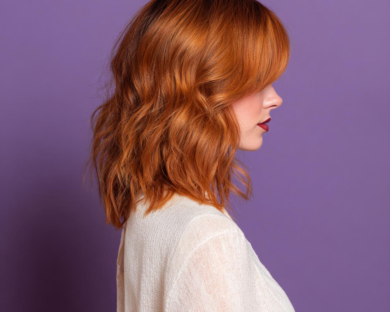 Orta-uzun, yumuşak dalgalar bakırı doğal gösteriyor. Orta ayrım yüz hatlarını dengeler; özellikle oval ve dikdörtgen yüzlere yakışır. Sıcak alt tonlulara çok uygun, nötr tenlerde de canlılık sağlar. Büyük maşa ve ısı koruyucu kullan; uçlara besleyici yağ dokundur.